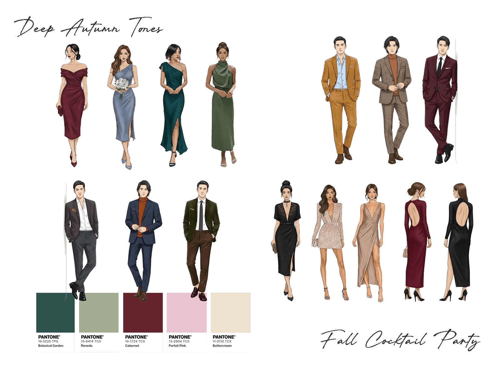 Feel free to wear any deep, rich tones to complement our cocktail setting.